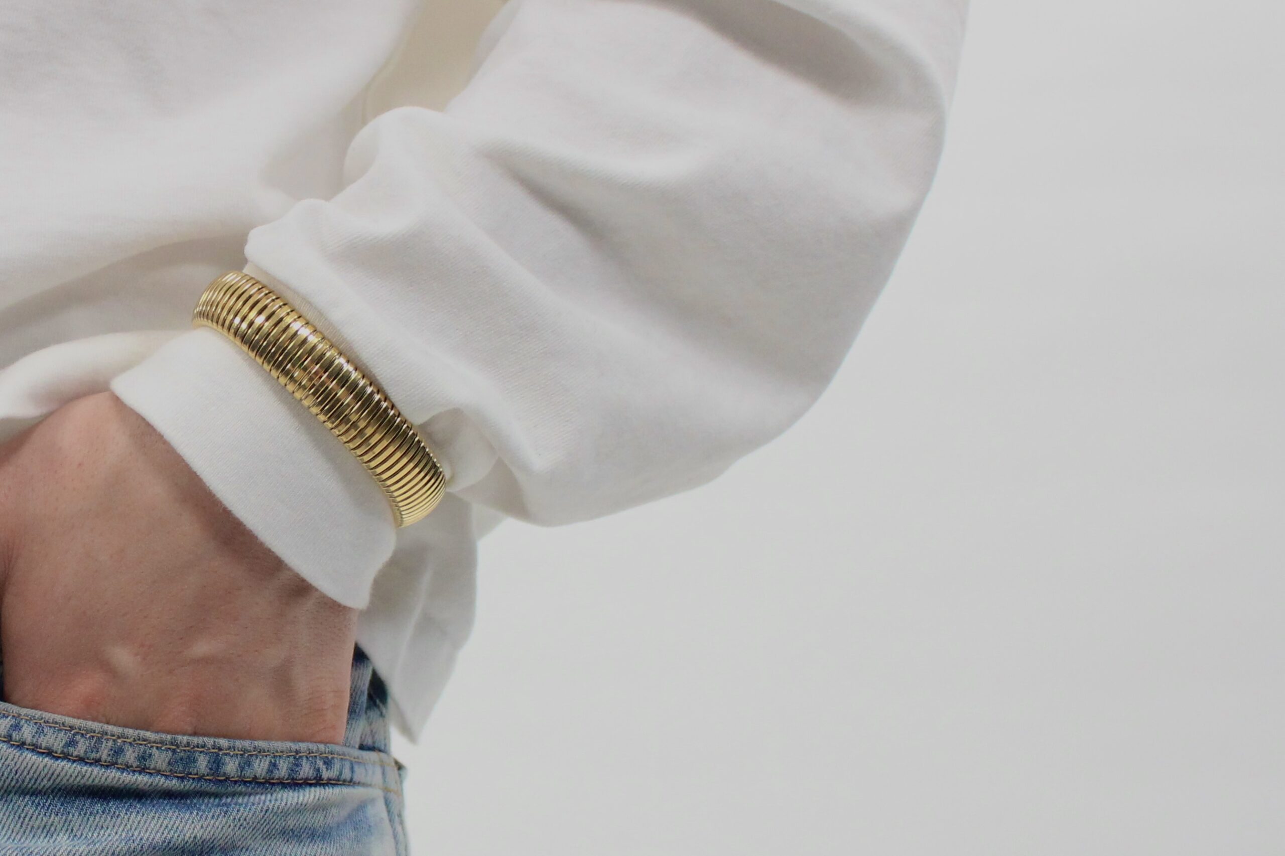 Onze basic bangle is ideaal voor dagelijks gebruik. Deze ST8MNTS bangle is van roestvrij staal en voelt als échte luxe aan. Deze bangle straalt tijdloze elegantie uit en is op meerder manieren te dragen.
