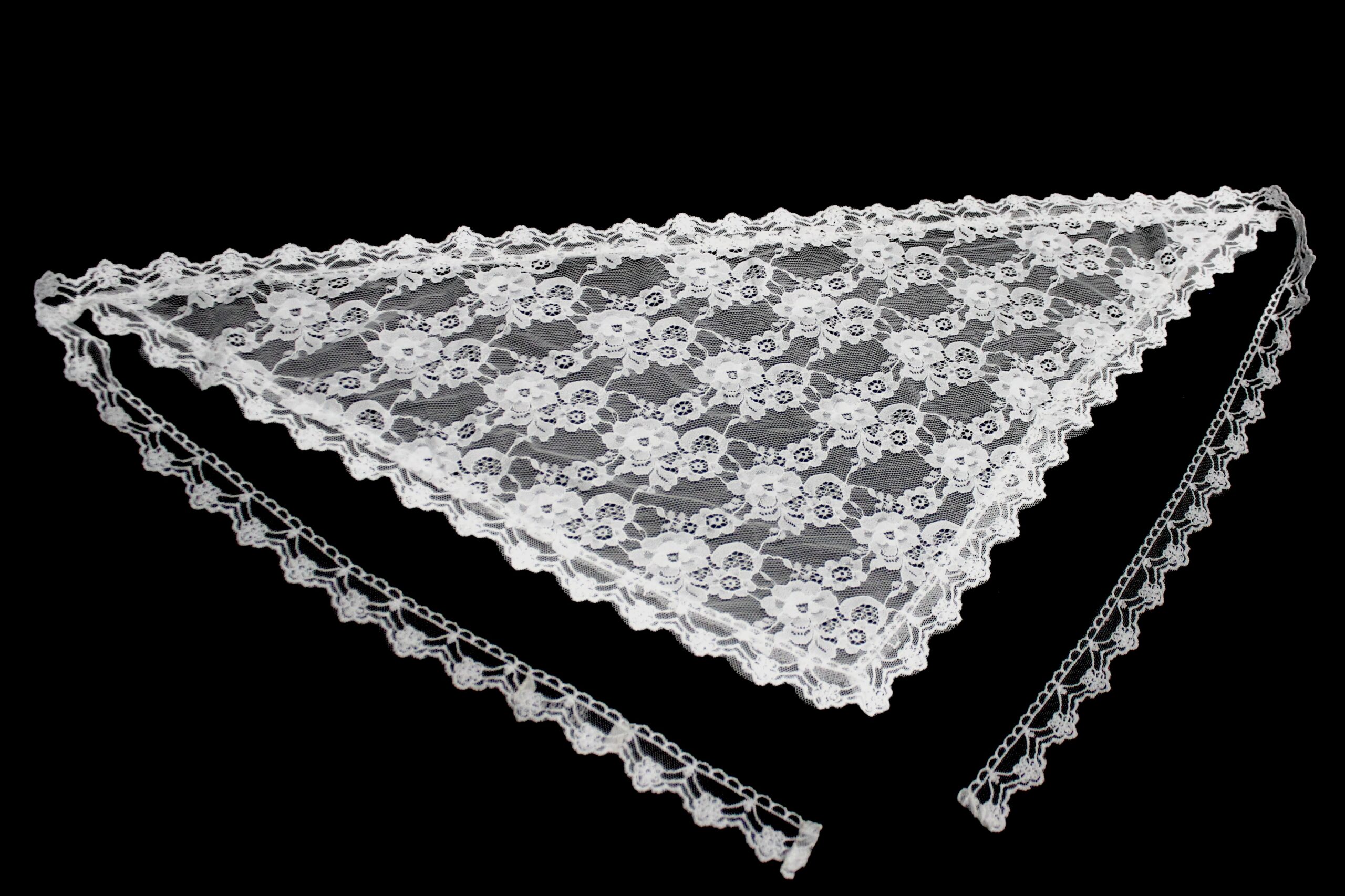 • De scarf is gemaakt van kant en heeft een witte kleur